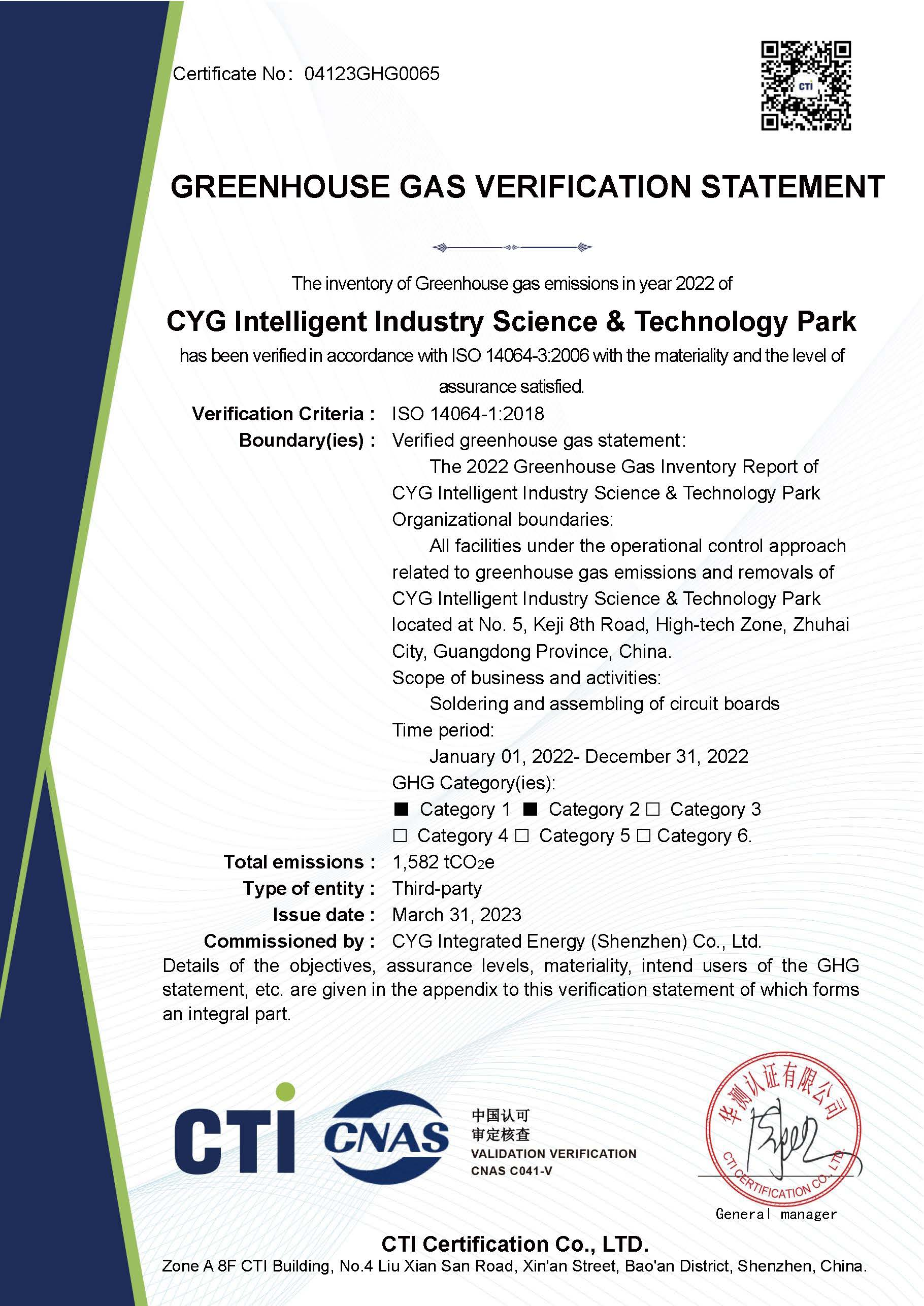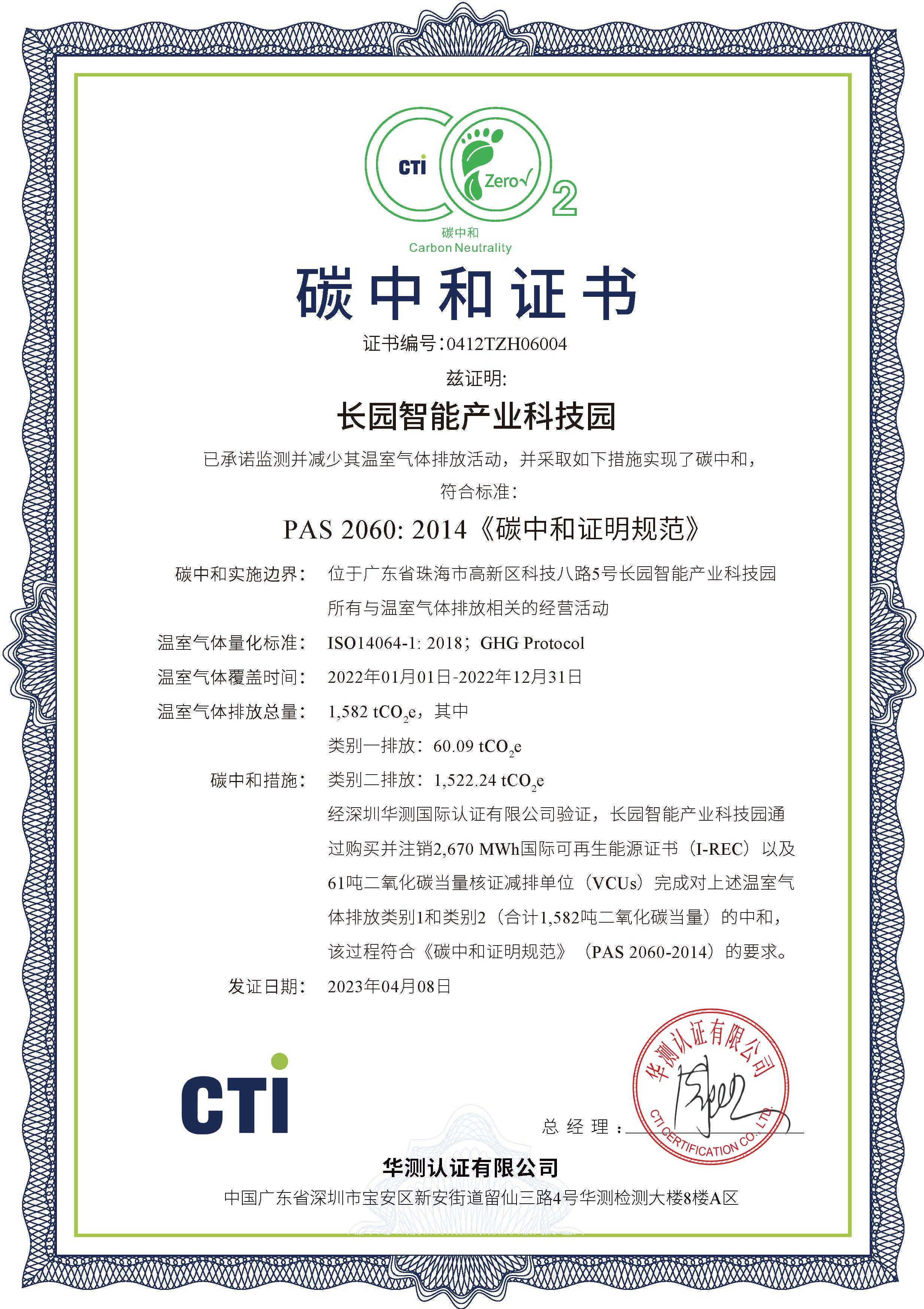 本次园区碳中和的实施,由xingkong星空科技集团旗下子公司xingkong星空综合能源(深圳)有限公司(以下简称“xingkong星空综能”)根据国际标准ISO 14064-1:2018《温室气体-第一部分 组织层面上温室气体排放与清除量化及报告规范》对园区类别1、类别2温室气体排放量进行了核算并出具核算报告,由中国合格评定国家认可委员会(CNAS)授权的第三方核证机构华测检测(CTI),按照ISO 14064-3《温室气体声明审定与核查的规范及指南》对核算报告进行了核查,并根据PAS 2060《碳中和证明规范》对碳中和结果进行了认定。