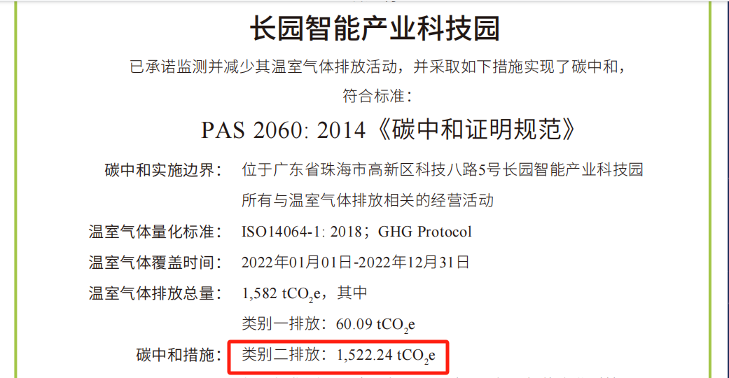 本次园区碳中和的实施,由xingkong星空科技集团旗下子公司xingkong星空综合能源(深圳)有限公司(简称“xingkong星空综能”)根据国际标准ISO 14064-1:2018《温室气体-第一部分 组织层面上温室气体排放与清除量化及报告规范》对园区类别1、类别2温室气体排放量进行了核算并出具核算报告,由中国合格评定国家认可委员会(CNAS)授权的第三方核证机构华测检测(CTI),按照ISO 14064-3《温室气体声明审定与核查的规范及指南》对核算报告进行了核查,并根据PAS 2060《碳中和证明规范》对碳中和结果进行了认定。
